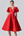 Vestido formal de satén rojo de una línea con mangas abullonadas