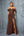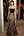 Vestido formal con volantes con volantes y abertura en el café brillante con hombros descubiertos