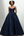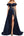 Vestido formal largo largo de tul plisado negro azul con cuello en V
