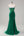 Vestido de fiesta largo de satén con cuentas y tirantes de una línea verde oscuro con apliques