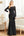 Vestido largo sirena negro de manga larga fruncido de satén madre de la novia