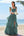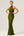 Vestido largo de dama de honor sirena verde pino con cuello halter con abertura