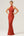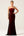 Negro Rojo Vestido De Dama De Honor Largo Ajustado Con Escote Drapado y Tirantes de Cristales