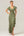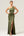 Vestido de dama de honor de satén plisado verde oliva con abertura