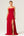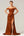 Vestido de dama de honor de satén terracota con escote en V y abertura