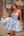 Vestido de fiesta corto azul corte en A con corsé y escote corazón