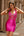 Vestido de fiesta corto con cuentas y cuello en V fucsia