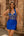Vestido de fiesta corto de satén halter ajustado azul real con pedrería