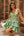 Vestido corto de fiesta con corsé y lazo verde salvia