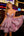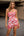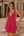 Vestido de fiesta corto floral fucsia sin tirantes con lazo