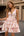 Vestido de fiesta corto floral rosa con corsé sin tirantes y apliques