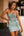 Vestido de fiesta corto con corsé de tirantes finos en verde salvia y apliques
