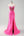 Vestido de fiesta brillante plisado con tirantes de espagueti de línea A de color rosa intenso con abertura