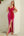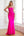 Vestido de fiesta largo sin espalda con cuello halter de sirena fucsia
