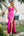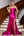 Vestido de fiesta corsé fucsia de terciopelo con volantes