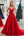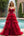 Princesa Roja Vestido de Fiesta Largo de Tul con Cuello en V Profundo y Abalorios