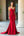 Vestido de fiesta largo rojo con escote en V y lentejuelas brillantes