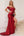 Vestido de fiesta largo de sirena de novia roja con abertura