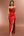 Un vestido de fiesta largo de encaje rojo