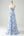 Vestido de invitada de boda azul con volantes estampado con hombros descubiertos y abertura