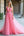 Vestido largo de invitada de boda fruncido de tul rosa con escote en V