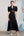 Vestido de invitada de boda largo de satén negro con cuello barco de manga larga en línea