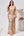 Vestido de noche de lentejuelas color albaricoque con flores en 3D
