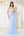 Vestido de noche azul con escote en pico y mangas capa