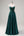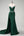 Vestido de fiesta largo de satén con cuentas y tirantes de una línea verde oscuro con apliques