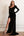 Vestido de fiesta largo cruzado de terciopelo marrón con hombros descubiertos