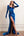 Vestido de fiesta de terciopelo sirena azul pavo real con abertura